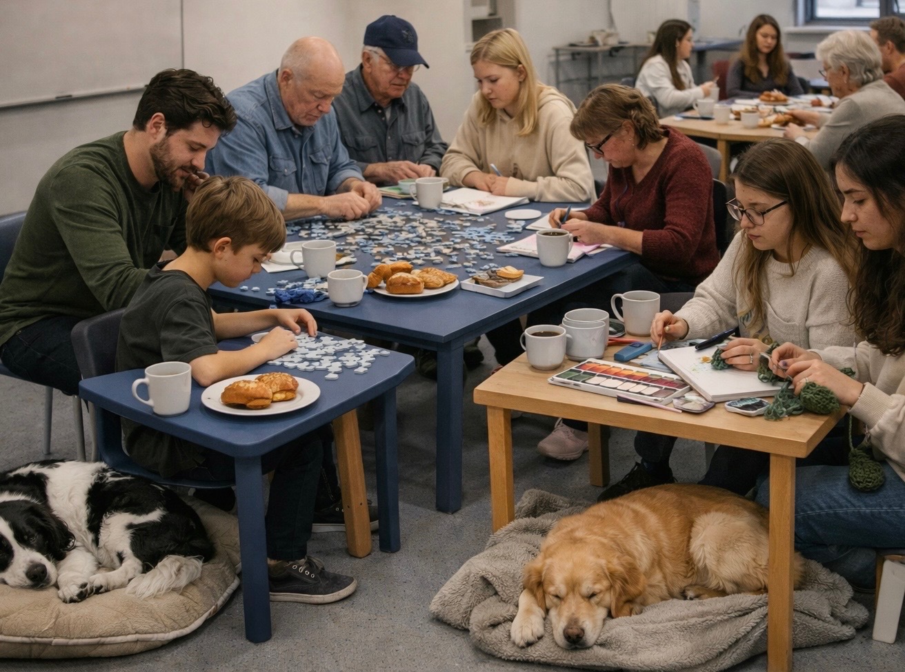 Ta med din fyrbenta vän och ditt favoritpyssel – stickning, virkning, scrapbooking, målning, pussel eller annat kreativt du tycker om.